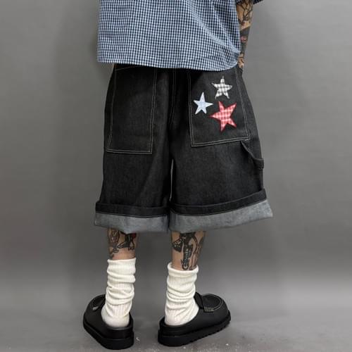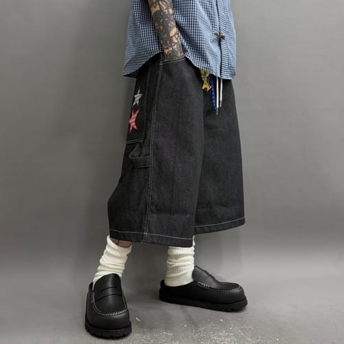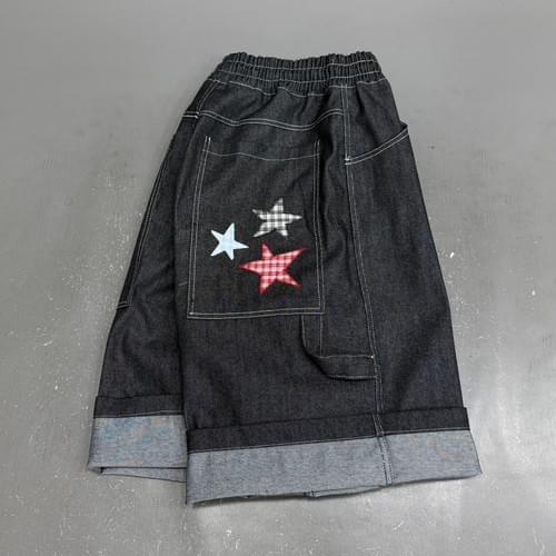 格仔星星牛仔7分褲