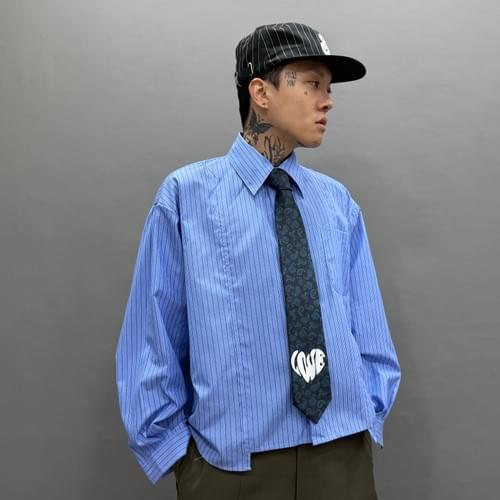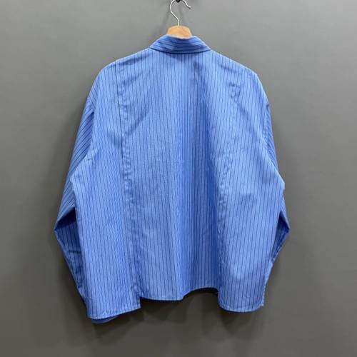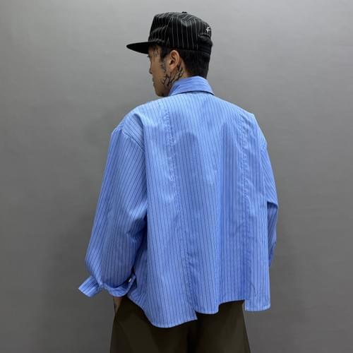 藍色條紋拼接短身恤衫