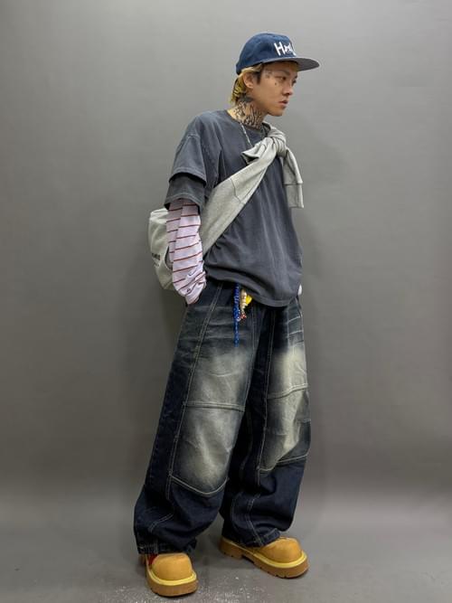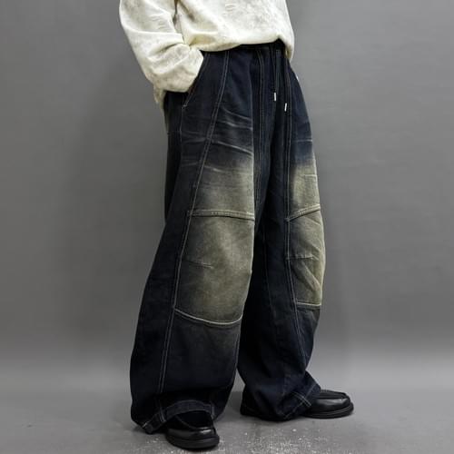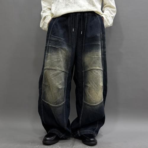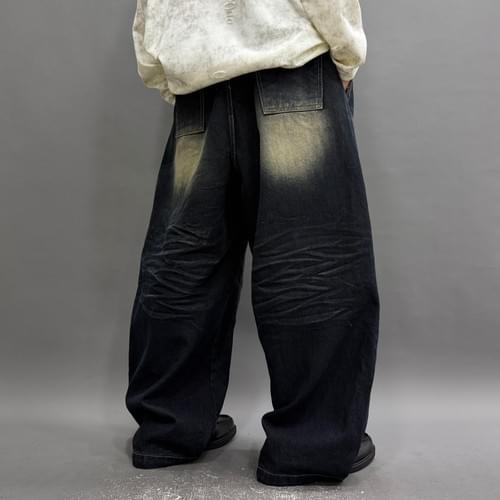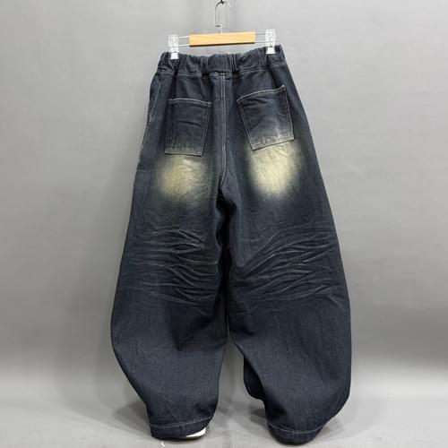 洗水牛仔立體闊褲