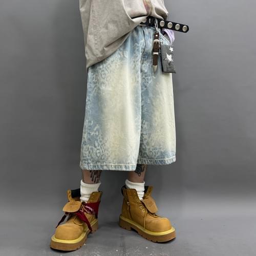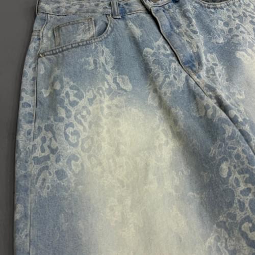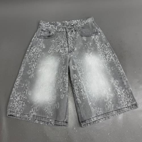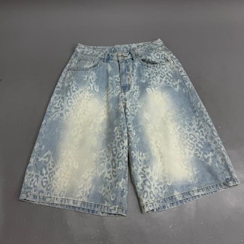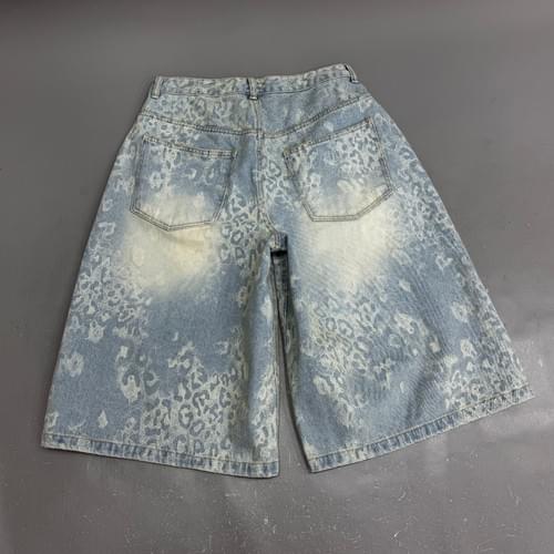 洗水豹紋牛仔短褲