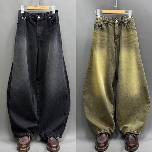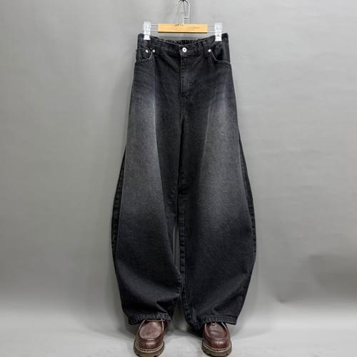 洗水弧形牛仔褲