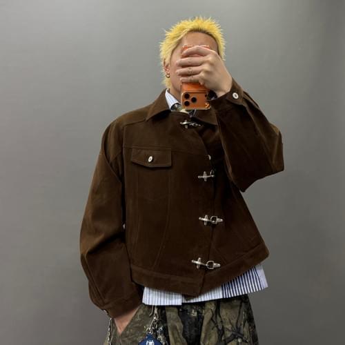 啡色猄皮消防扣外套
