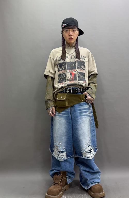 洗水沙色拼迷彩Layer Tee