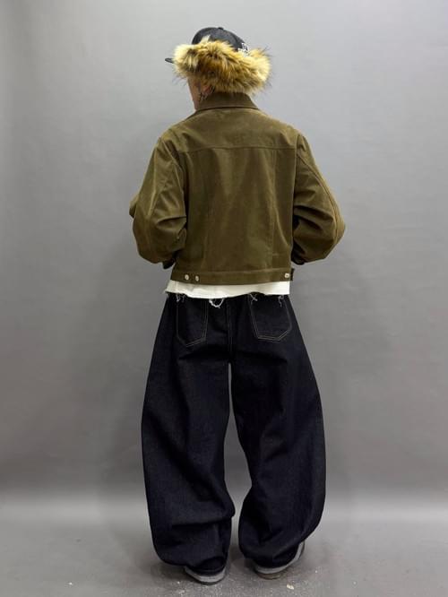 Unwash深藍牛仔灣刀褲