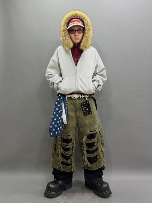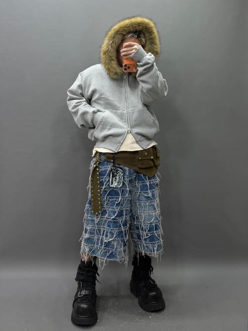 寬鬆 短身Cutting 雙拉鍊